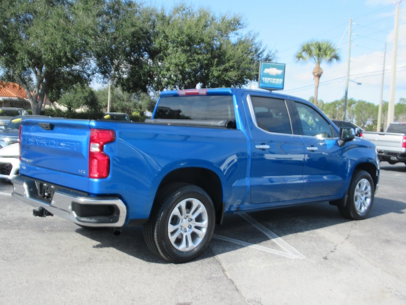 Vann Gannaway Chevrolet has no surprise markups or addons. Our dealer fee is just $484, and we have been family-owned since 1986. Give us a call today at (352) 343-2400. This 2023 Chevrolet Silverado 1500 LTZ Crew Cab is a vehicle that is sure to turn heads. Boasting a glacier blue metallic exterior and jet black interior, this car has been meticulously maintained and has only driven 32,307 miles. Under the hood, this 4x2 5.3 liter EcoTec3 V8 355hp 383 lb-ft engine is fuel injected and boasts an impressive fuel economy of 17 mpg in the city and 21 mpg on the highway. Safety features include a crash test rating of 5 out of 5 stars, as well as other notable features such as touch screen display, blind spot sensor, hill start assist, navigation system with voice recognition, and Bluetooth® phone connectivity. This car also comes with a crash test rating of 5 out of 5 stars, making it an excellent choice for anyone looking for a reliable and safe ride. Contact details: Vann Gannaway Chevrolet in Eustis, FL - (352) 343-2400 - www.vgchevy.com